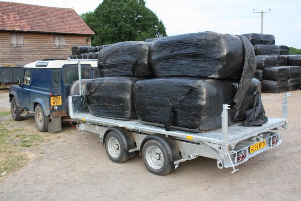 We can even unload ourselves if you don't have a forklift or loader tractor. Our new tipping trailer can carry upto 10 Mini Bales, 8 Standard Bales or 5 Jumbo's